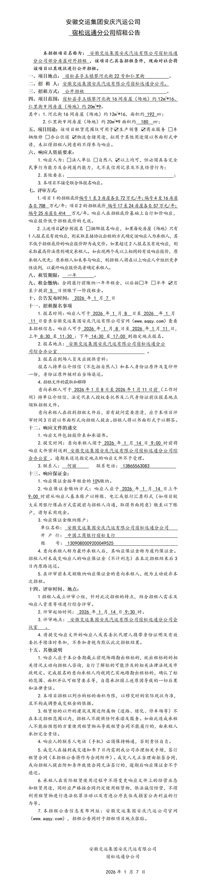 宿松遠(yuǎn)通分公司部分房屋對外招租