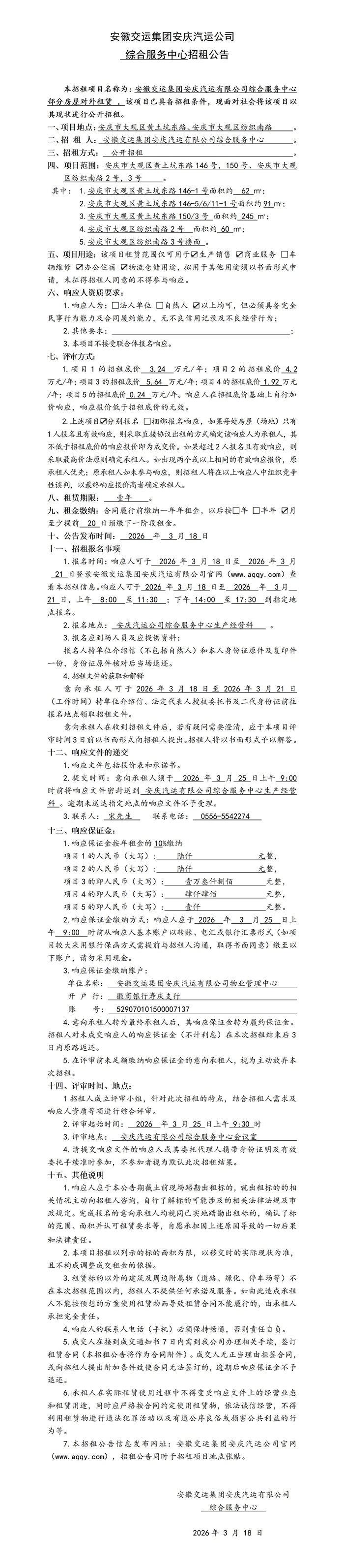 綜合服務(wù)中心招租公告